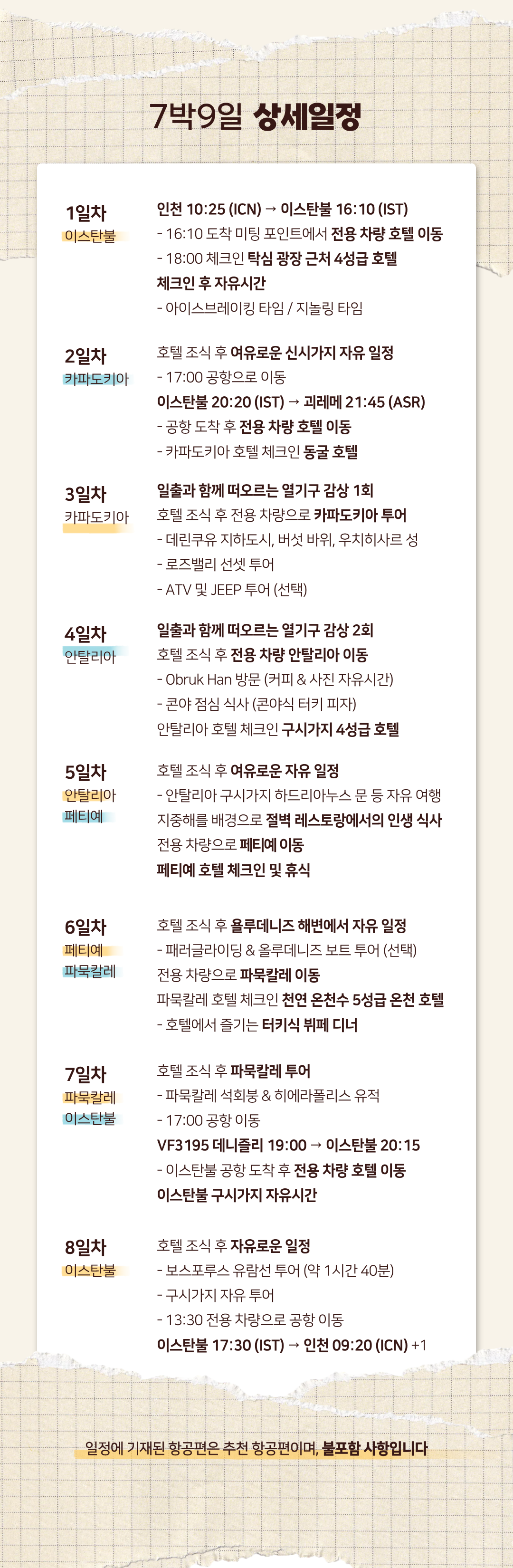 ✔ 한국에서 함께 출발하는 것이 아닌 정해진 시간에 이스탄불 공항에서 집결하는 일정입니다.