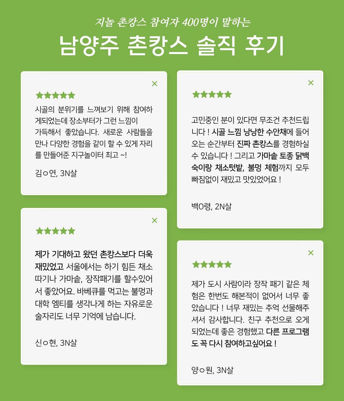 [마감임박] 남양주, 리프레시 촌캉스 (5월)