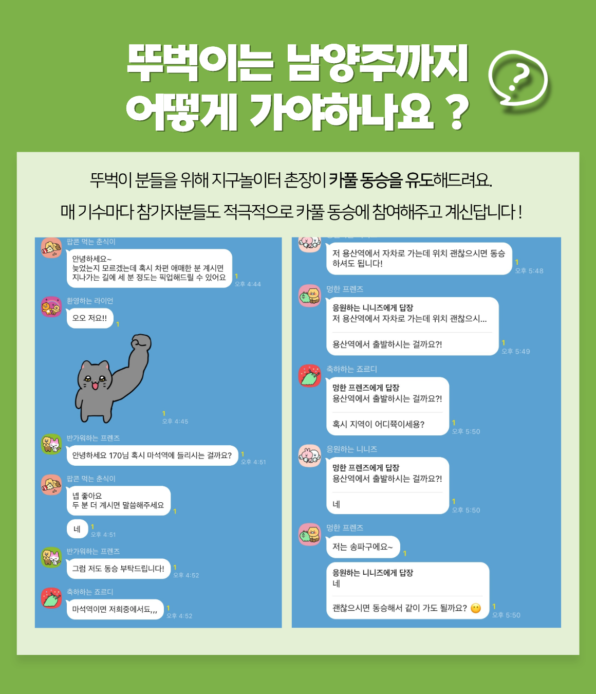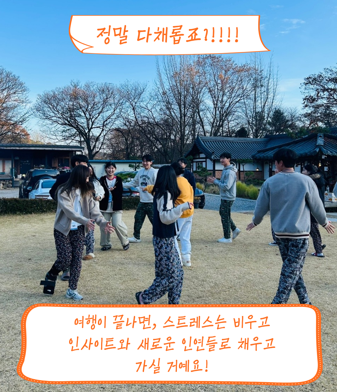 • 운영진은 여러분이 즐겁고 안전한 여행이 되시도록 끝까지 챙기고 신경 써 드릴 것입니다. 현장 운영진께 무례하신 분들이 안 계시길 바랍니다. 협조 부탁 드려요