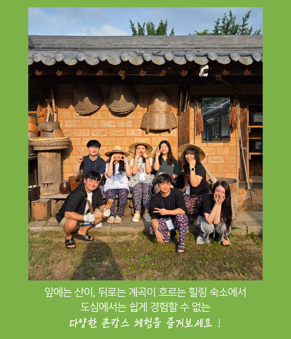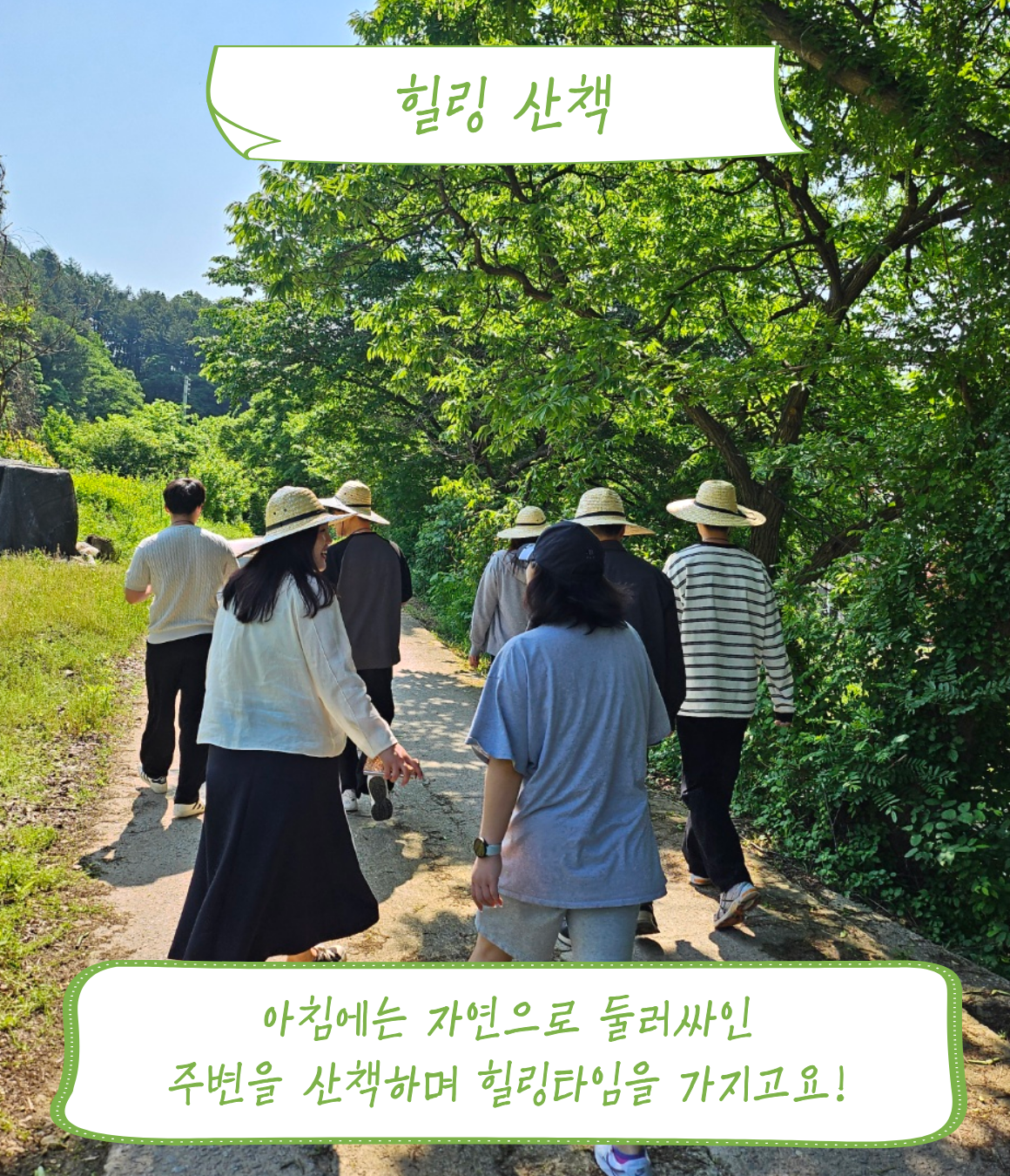숙소 내에서 진행하는 메인프로그램, 유기농자급자족 촌캉스 체험은 모두 진행합니다.