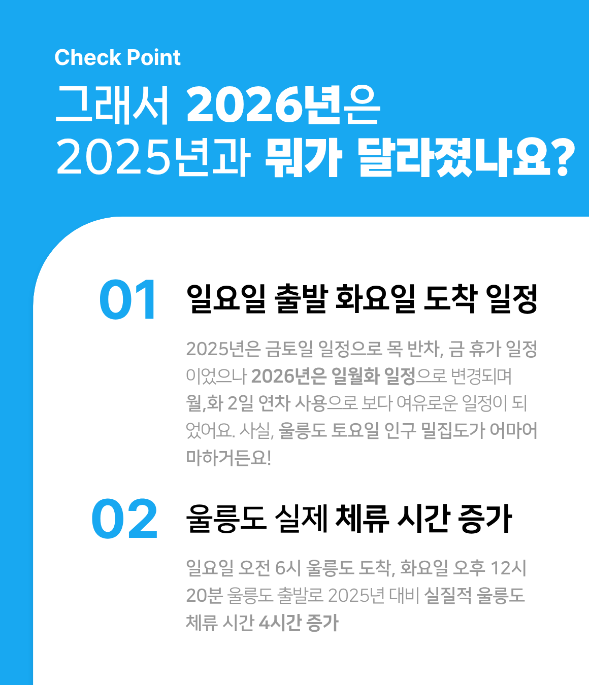 기존 대비 약 4시간 더 여유 있는 일정으로, 첫날부터 일정 꽉 채워서 여행 가능합니다.